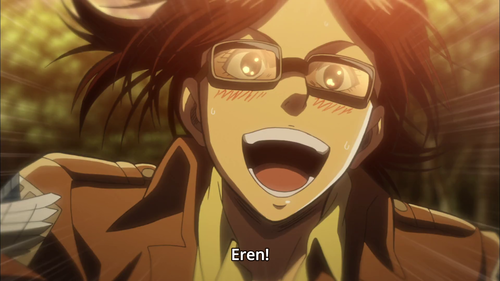 - Jadę z wami! - Zawołał. Wtedy kobieta tytan wzięła zamach i zatrzymała się, aby złapać Erena, ale wtedy usłyszała krzyk.